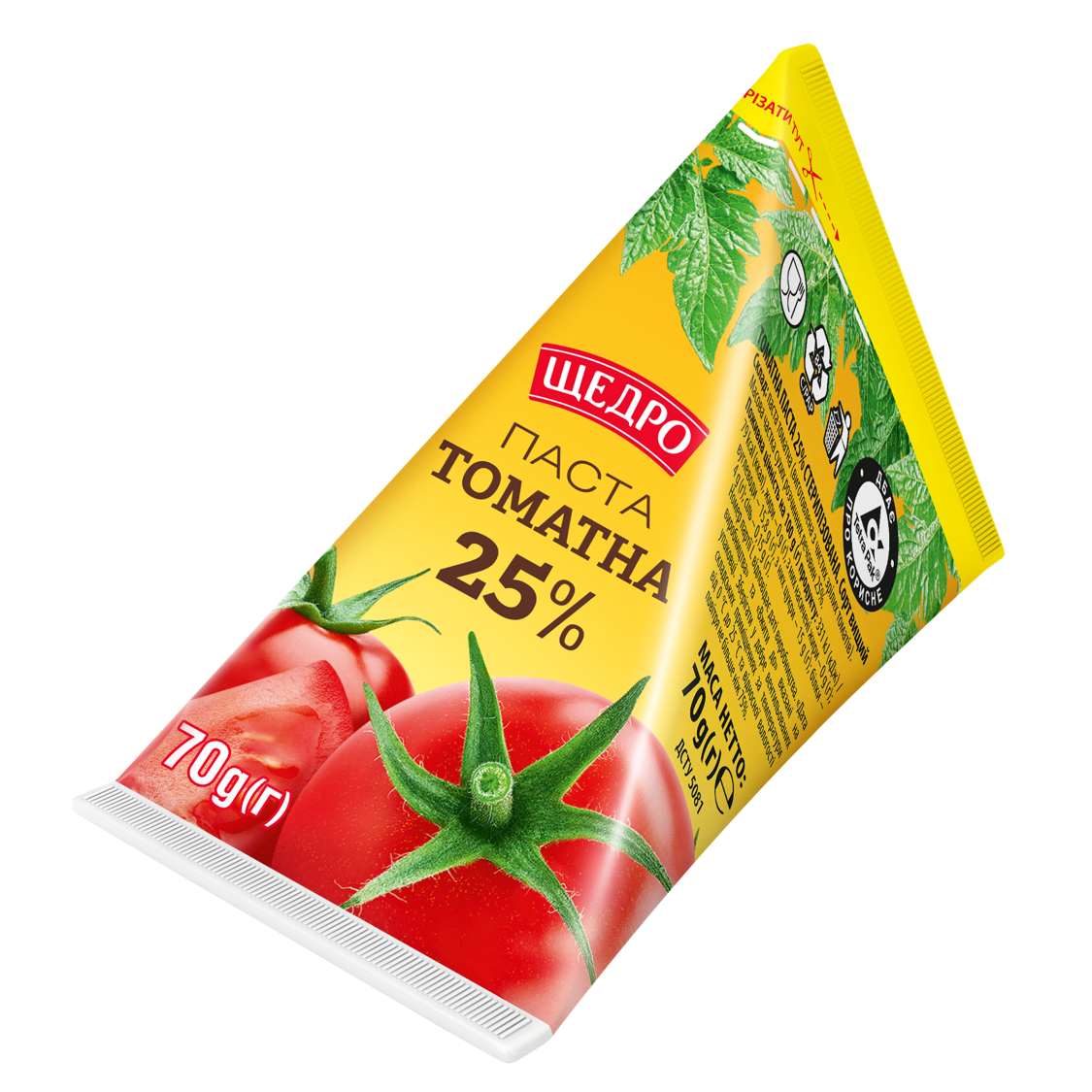 Новинка — томатна паста «Щедро»! Вона виготовлена з добірних томатів, має насичений смак і густу консистенцію. Зручна упаковка об’ємом 70 г ідеально підходить для щоденного використання. Додавайте томатну пасту «Щедро» до перших та других страв, різноманітних соусів, запіканок та закусок — буде ще смачніше!